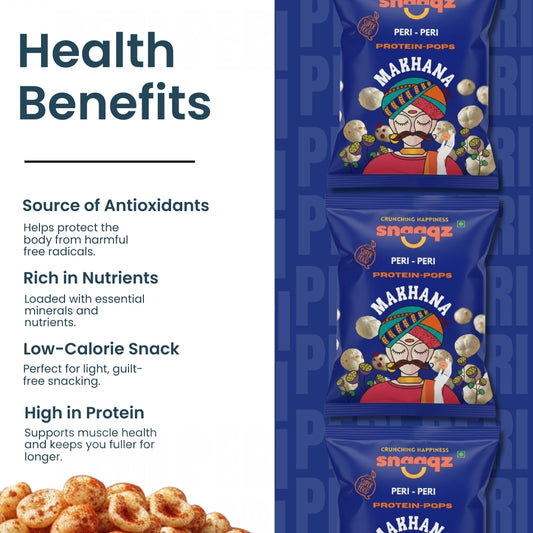 Snaaqz Roasted and Flavoured Makhana | Peri Peri Makhana | Pack of (3 x 30gm) | Namkeen Snacks & Puffed Snacks | Healthy Snack | Cholesterol Free | Gluten Free | Rich In Protein & Fibre